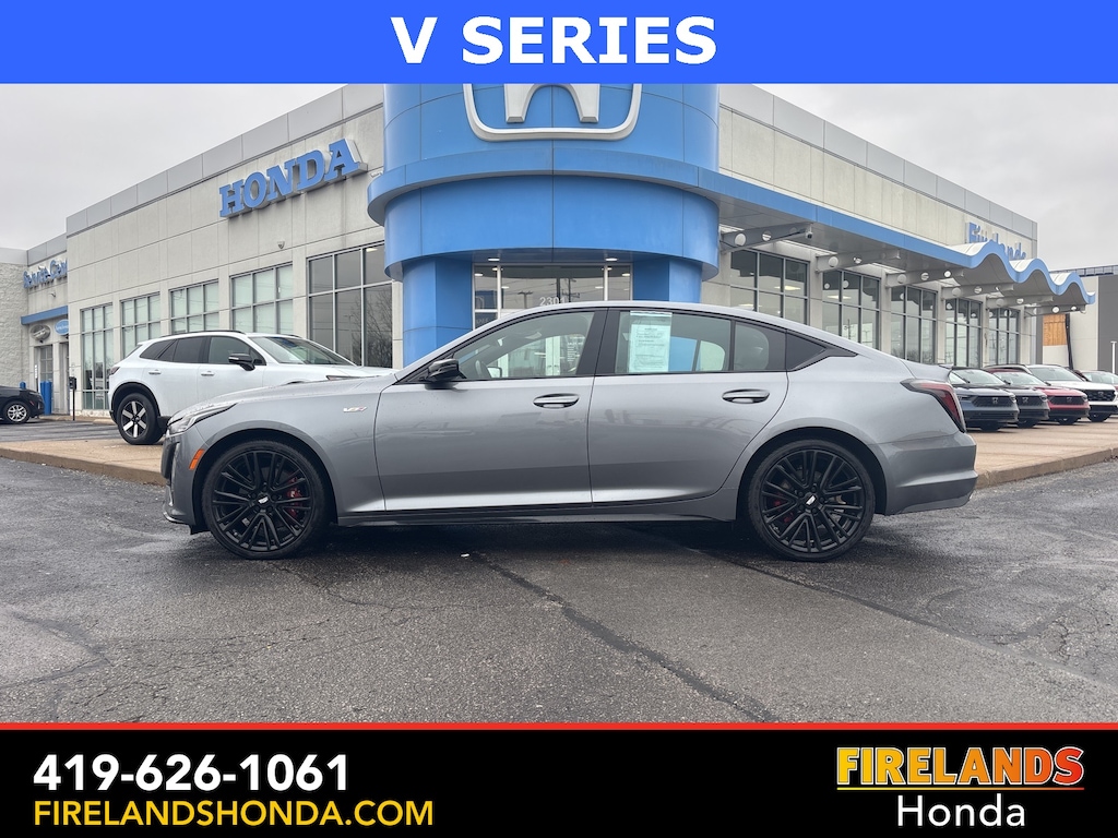 Firelands Honda is proud to offer this great-looking 2022 Cadillac CT5 in Satin Steel Metallic. This CT5 has been checked by our award winning service department. Hot features include: Back Up Camera, Remote Start, All-Wheel Drive, Heated Leather Seats, One Owner, Memory Seats, Heated Steering Wheel, Car Bravo Certified, 1-Owner, Great Price, Like New, 4WD / 4x4 / AWD, Leather Seats, Heated Seats, Heated & Cooled Seats, Sunroof/Moonroof, Panoramic Roof, Navigation System, CarPlay, Android Auto, Bluetooth, Backup Camera, Steering Wheel Controls, Cruise Control, Multi Zone Climate Control, Keyless Start, Keyless Entry, Premium Audio, Satellite Radio, Premium / Alloy Wheels, Well Serviced, Power Sunroof/Moonroof, AWD / 4WD, Body-Color Heated Pwr-Adjustable Outside Mirrors, Bose Performance Series Premium 15-Speaker System, Cold Weather Package, Dual Digital Driver Information Center Display, Front & Rear Park Assist, HD Radio, HD Rear Vision Camera, Heated door mirrors, Heated Driver & Front Passenger Seats, Heated Steering Wheel, Inside Rear-View Auto-Dimming Mirror, Lane Keep Assist w/Lane Departure Warning, Leather-Wrapped Thick Rim Steering Wheel, LED Reflective Windshield Collision Alert, Memory seat, Onyx Package (LPO) w/Black Raven, Power door mirrors, Power driver seat, Preferred Equipment Group 1SF, Radio: Cadillac User Experience, Rear window defroster, SiriusXM w/360L, Steering wheel mounted audio controls, Turn signal indicator mirrors, Wheels: 20" Alloy w/Gloss Black Finish (LPO), Wheels: 20" Transit Steel. Certified.