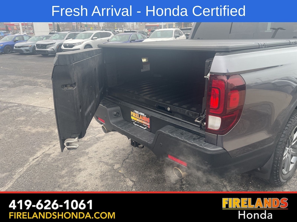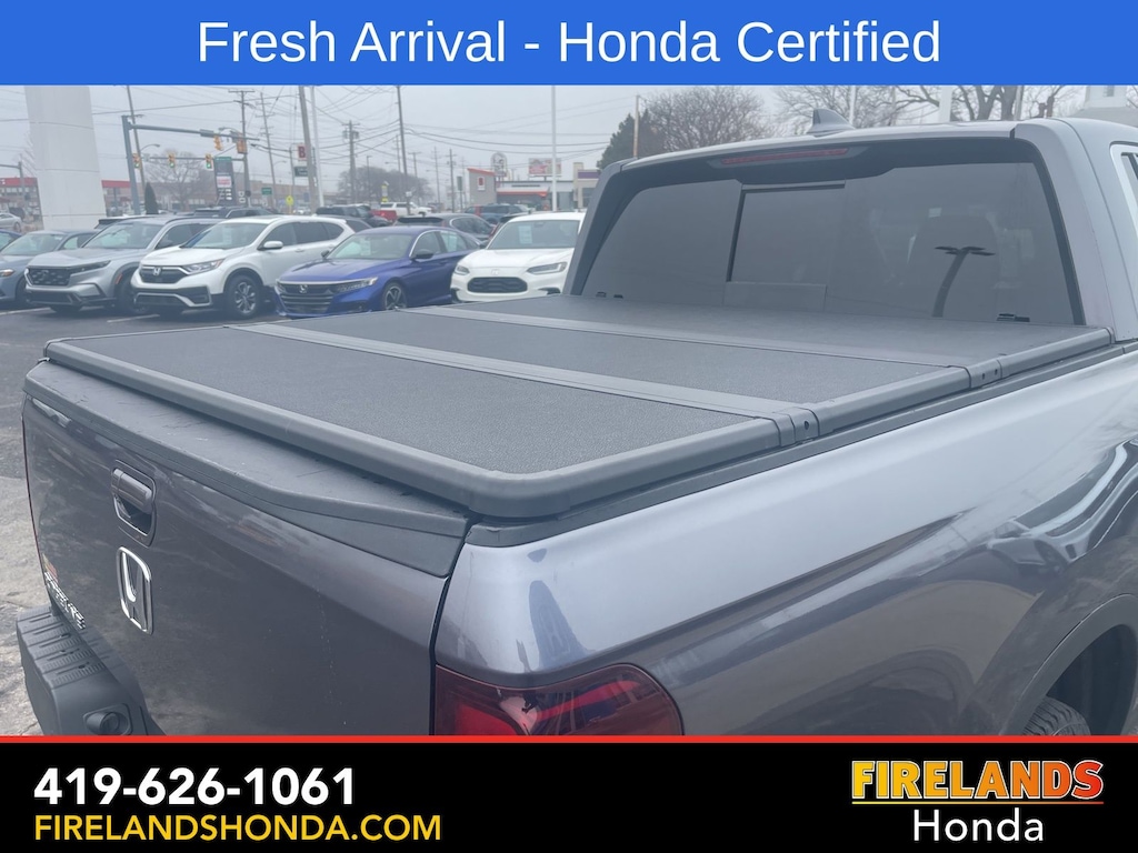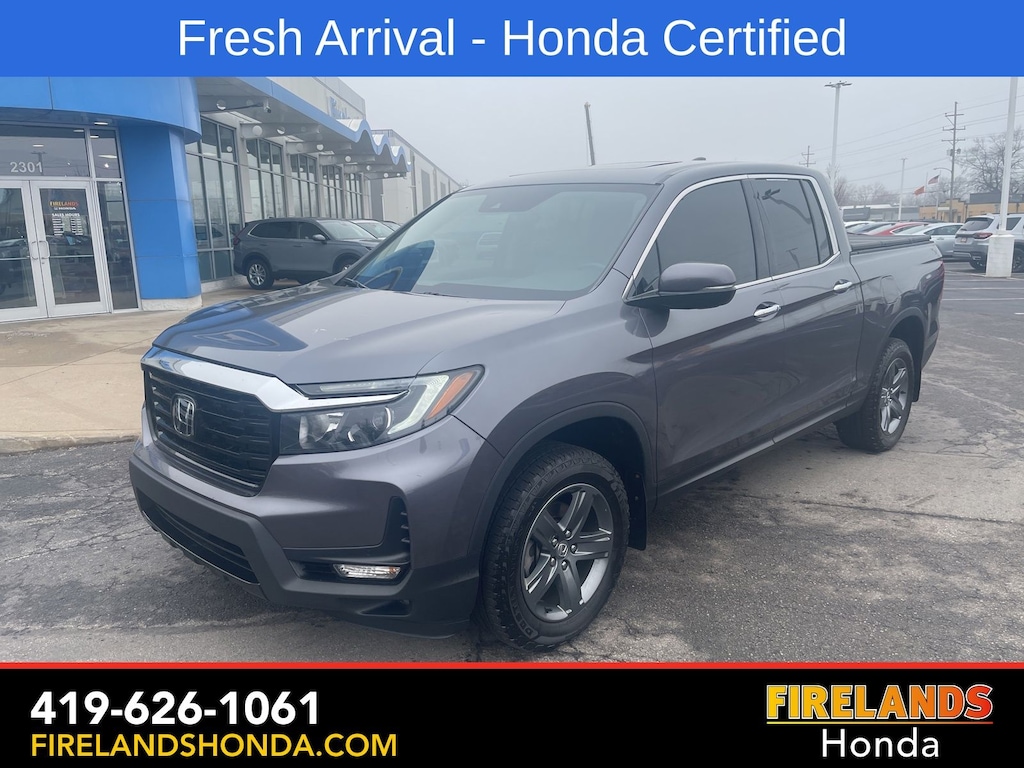 Firelands Honda is proud to offer this good-looking 2022 Honda Ridgeline in Modern Steel Metallic. This Ridgeline has been checked by our award winning service department. Hot features include: Bluetooth Hands Free, Back Up Camera, Remote Start, Adaptive Cruise Control, Balance of Factory Warranty, Service Records Available, All-Wheel Drive, Heated Leather Seats, Locally Owned New Car Trade, Lane Departure Warning, Apple Carplay/Android Auto, Blind Spot Detection, Fog Lights, Automatic Emergency Braking, Forward Collision Warning, Rear Cross Traffic Alert, Honda Certified, Moonroof / Sunroof, Clean CARFAX, One Owner, No Accidents, Trailer/Tow Package, Memory Seats. Certified.