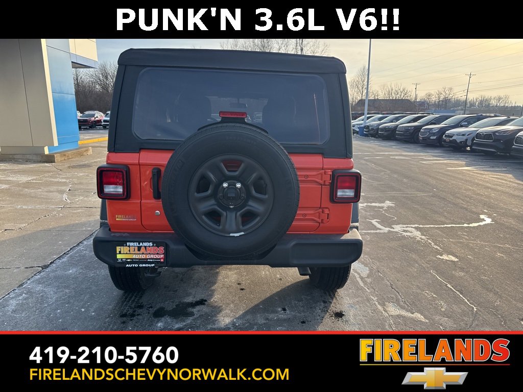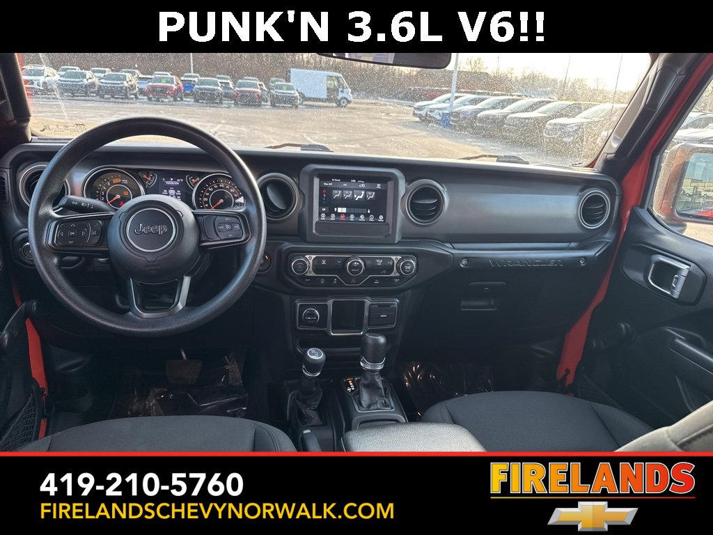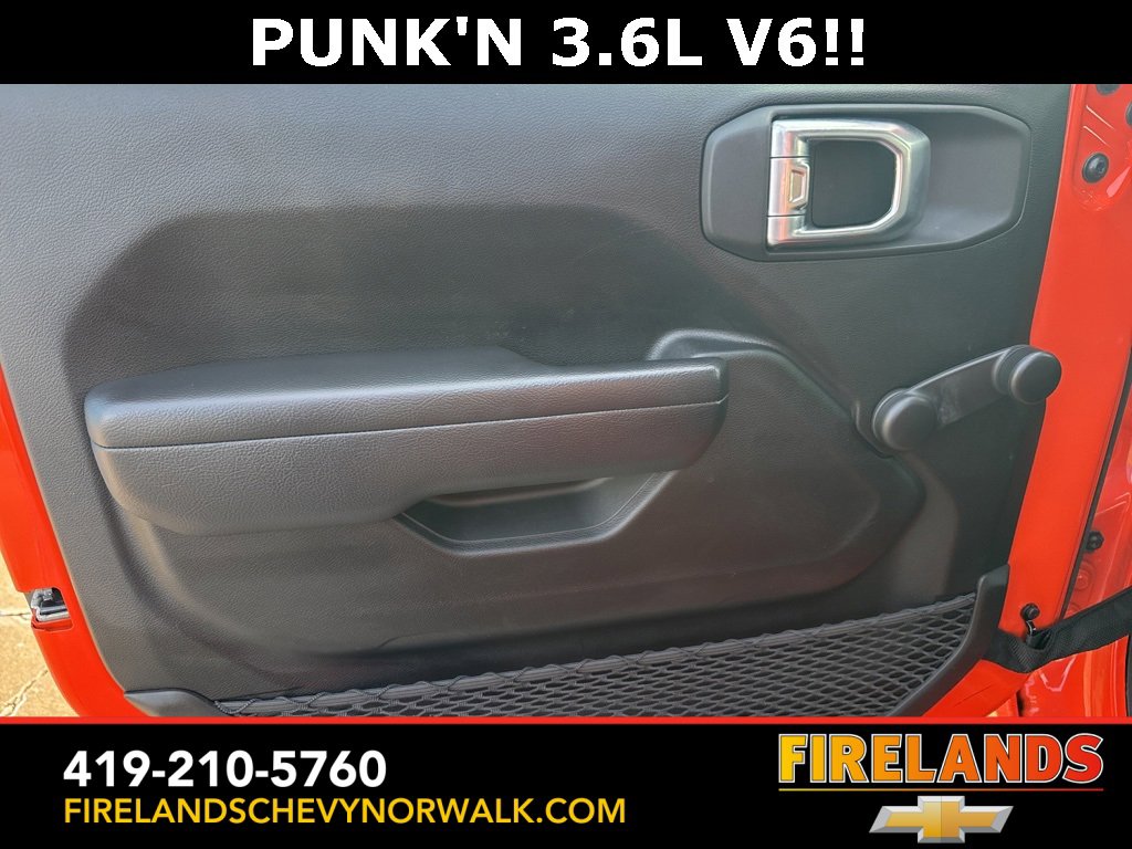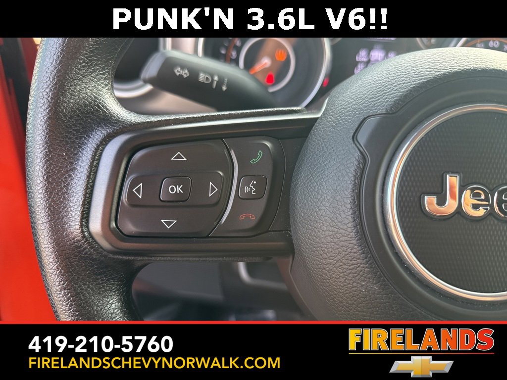 Great Price, Heated Seats, CarPlay, Android Auto, Backup Camera, Blind Spot Monitoring, Lane Departure Warning, Tow Package, Clean CARFAX, 4WD/4X4/AWD, Bluetooth Hands Free, Back Up Camera, Balance of Factory Warranty, Service Records Available, 4x4, Apple Carplay/Android Auto, Fog Lights, No Accidents, Soft Top, Wrangler Sport, Punkn Metallic Clearcoat, 3.45 Overall Top Gear Ratio, 4-Wheel Disc Brakes, ABS brakes, Air Conditioning, AM/FM radio, Apple CarPlay, Apple CarPlay/Android Auto, Brake assist, Cloth Low-Back Bucket Seats, Compass, Deep Tint Sunscreen Windows, Delay-off headlights, Driver door bin, Dual front side impact airbags, Electronic Stability Control, Emergency communication system: SiriusXM Guardian, Engine Oil Cooler, Front Center Armrest w/Storage, Front fog lights, Front reading lights, Google Android Auto, GPS Antenna Input, Integrated Center Stack Radio, Integrated roll-over protection, Integrated Voice Command w/Bluetooth, Non-Lock Fuel Cap w/o Discriminator, Normal Duty Suspension, Outside temperature display, ParkView Rear Back-Up Camera, Passenger door bin, Passenger vanity mirror, Power steering, Quick Order Package 25B Sport, Radio data system, Radio: Uconnect 4 w/7 Display, Rear anti-roll bar, Speed control, Split folding rear seat, Steering wheel mounted audio controls, Stop-Start Dual Battery System, Telescoping steering wheel, Tilt steering wheel, Traction control, Wheels: 17 x 7.5 Black Steel Styled.