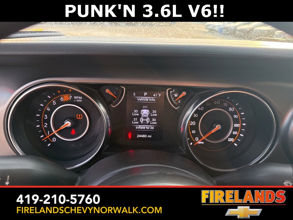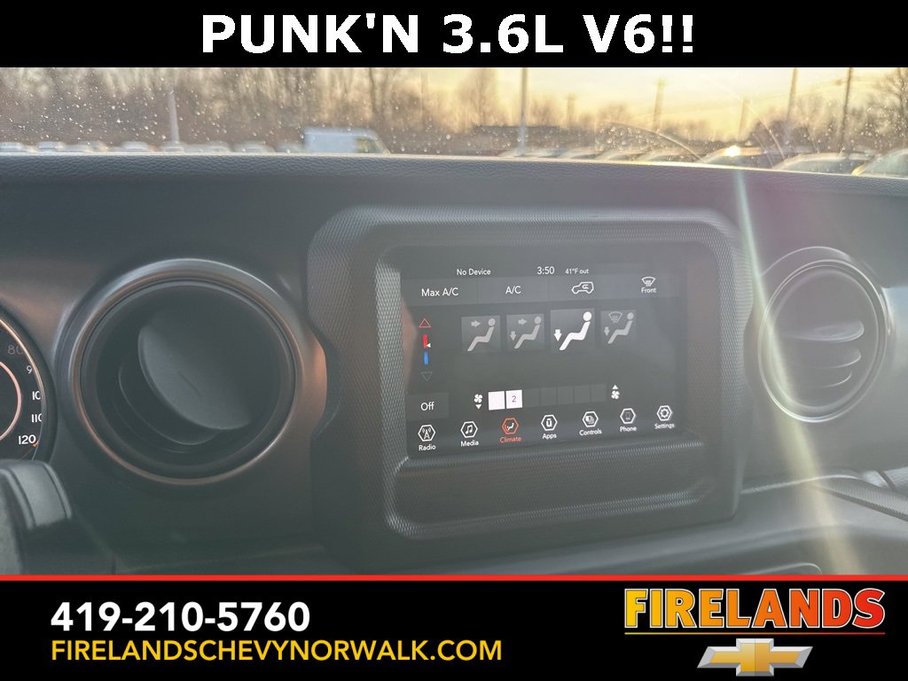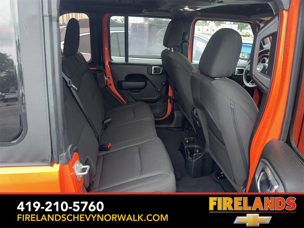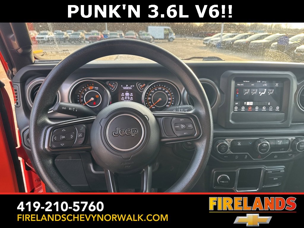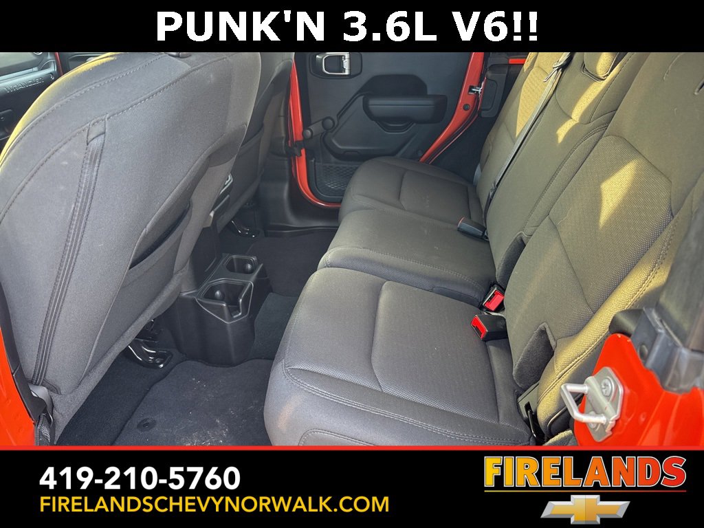 Great Price, Heated Seats, CarPlay, Android Auto, Backup Camera, Blind Spot Monitoring, Lane Departure Warning, Tow Package, Clean CARFAX, 4WD/4X4/AWD, Bluetooth Hands Free, Back Up Camera, Balance of Factory Warranty, Service Records Available, 4x4, Apple Carplay/Android Auto, Fog Lights, No Accidents, Soft Top, Wrangler Sport, Punkn Metallic Clearcoat, 3.45 Overall Top Gear Ratio, 4-Wheel Disc Brakes, ABS brakes, Air Conditioning, AM/FM radio, Apple CarPlay, Apple CarPlay/Android Auto, Brake assist, Cloth Low-Back Bucket Seats, Compass, Deep Tint Sunscreen Windows, Delay-off headlights, Driver door bin, Dual front side impact airbags, Electronic Stability Control, Emergency communication system: SiriusXM Guardian, Engine Oil Cooler, Front Center Armrest w/Storage, Front fog lights, Front reading lights, Google Android Auto, GPS Antenna Input, Integrated Center Stack Radio, Integrated roll-over protection, Integrated Voice Command w/Bluetooth, Non-Lock Fuel Cap w/o Discriminator, Normal Duty Suspension, Outside temperature display, ParkView Rear Back-Up Camera, Passenger door bin, Passenger vanity mirror, Power steering, Quick Order Package 25B Sport, Radio data system, Radio: Uconnect 4 w/7 Display, Rear anti-roll bar, Speed control, Split folding rear seat, Steering wheel mounted audio controls, Stop-Start Dual Battery System, Telescoping steering wheel, Tilt steering wheel, Traction control, Wheels: 17 x 7.5 Black Steel Styled.