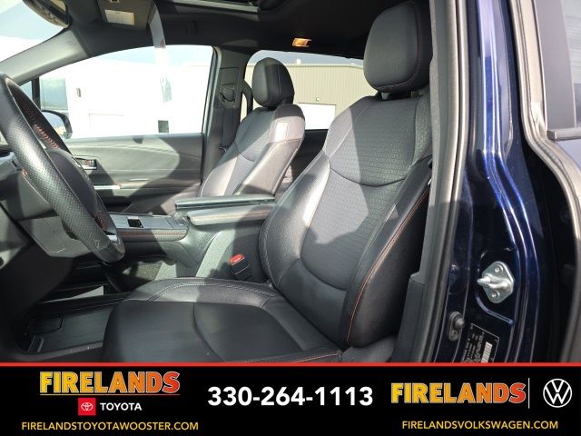 The interior of this Sienna XSE is a true delight, with features that cater to your every need. Enjoy the convenience of the Navigation System, the impressive 8-speaker audio system, and the dual-zone automatic climate control that ensures everyone on board is comfortable. The heated leather seats and power-adjustable driver's seat provide unparalleled comfort, while the rear air conditioning and power liftgate add to the overall convenience.