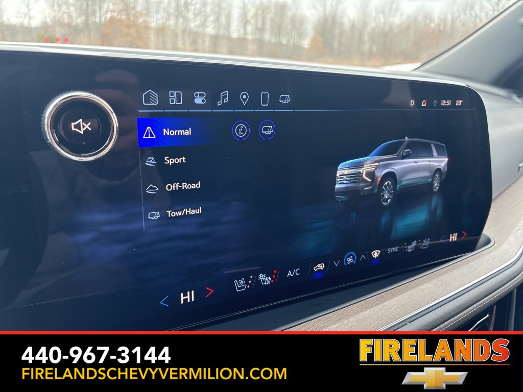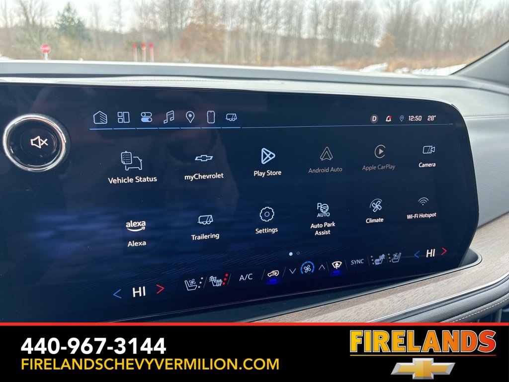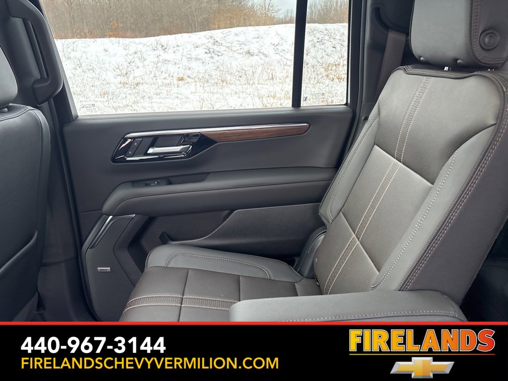 Thank-you for allowing us to Serve you. Our amazing hospitality starts with us opening the door for you with a smile and a humble handshake and ends with a full tank of gas on every vehicle...and sometimes a hug. Buy with confidence at Firelands Chevy Vermilion, where you receive a copy of our detailed service report and a free vehicle history report by CarFax. If you canât make to us, let us come to you. Our pleasant staff will personally deliver any vehicle up to 150 miles at no charge.CARFAX One-Owner. One Owner, Accident Free CarFax, Locally Owned New Car Trade, Garage Stored, Power Sunroof, Power Sunroof/Moonroof, AWD / 4WD, AppleCar Play / Android Auto, Heated Seats, Cooled Seats, Leather Seats, Memory Seats, Heads Up Display, Rear / Backup Camera, Remote Start, Cruise Control, Steering Wheel Controls, 15 Diagonal Multi-Color Head-Up Display, 2-Speed Active Electronic AutoTrac Transfer Case, 3rd Row 60/40 Power-Folding Split-Bench, 3rd Row All-Weather Floor Liners, 4-Way Power Driver Lumbar Seat Adjuster, 4-Way Power Front Passenger Lumbar Seat Adjuster, 8-Way Power Front Passenger Seat Adjuster, Advanced Trailering Package, Air Ride Adaptive Suspension, All-Weather Cargo Mat, Blind Zone Steering Assist with Trailering, Bose 10-Speaker Surround with CenterPoint, Bright Front and Rear Door Sill Plates, Chrome Door Handles with Body-Color Strip, Dual Exhaust System, Dual-Pane Power Panoramic Sunroof, Extra Capacity Cooling System, First and Second Rows Premium Floor Liners, Front LED Fog Lamps, Heads-Up Display, Heated 2nd Row Outboard Seats, Heated Driver and Front Passenger Seats, Heated Power-Adjustable Outside Mirrors, Heated Steering Wheel, High Country Deluxe, Hill Descent Control, Hitch View with Pan/Zoom Image Adjustment, Inside Rearview Auo-Dimming Rear Camera Mirror, Integrated Trailer Brake Controller, LED Headlamps with LED Daytime Running Lamps, LED Tail Lamps, Magnetic Ride Control Suspension, Max Trailering Package, Memory seat, Memory Settings, Navigation system: Google built-in compatibility (select service plan required, terms and limitations apply), Perforated Heated and Ventilated Seats, Power Release 2nd Row Bucket Seats, Power Tilt and Telescopic Steering Column, Power-Retractable Assist Steps, Power-Sliding Center Floor Console, Preferred Equipment Group 3LZ, Premium Liner Protection Package, Rear Power Liftgate, Smart Trailer Integration Indicator, Steering wheel memory, Steering wheel mounted audio controls, Universal Home Remote, Wheel Locks (set of 4), Wheels: 22 x 9 Bright Machined Aluminum, Wireless Phone Charging.Certified. Certification Program Details: CarBravo Certified includes 6-month/6,000 mile Limited Bumper-To-Bumper Warranty, 24-Hour Roadside Assistance, Courtesy Transportation (subject to availability), Vehicle History Report, 2500 GM Reward Points, 1-month Onstar Trial, 3-month Sirius XM trial, 126-Point Inspection, and completion of all open recalls and field actions.Whether you are looking for a Great Deal, a Great Price, or a Great Value, Firelands Chevrolet of VERMILION has you covered. Join us for the BEST Experience you will ever have. If we do not have what you are looking for, just let us know and we will find it. We have access to any make/model and also offer Certified Pre-Owned vehicles too. We can also locate vehicles with just about any option to include Sunroof, Moonroof, Navigation System, Heated Steering Wheel, HomeLink, LED Headlights, DVD Player, Rear Seat Entertainment, Backup Camera, Brake Assist, Automatic Emergency Braking, Blind Spot Monitoring, Cross Traffic Alert, Rear Cross Traffic Alert, Lane Departure Warning, Night Vision, Head-up Display, Automatic Parking, Cruise Control, Adaptive Cruise Control, Rain Sensing Wipers, Remote Engine Start, Memory Seat, Leather Seats, Heated Seats, Cooled Seats, Third (3rd) Row Seats, Steering Wheel Controls, Multi-zone Climate Control, Keyless Entry, Allow Wheels, Premium Wheels, Apple Ca